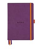 - Weicher Deckel aus italienischem Kunstleder mit geprägtem Rhodia Logo, Rücken verleimt, 120 Blatt nummeriert, 6 Seiten Index, immerwährender Kalender & Lesezeichen