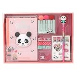 - Das Set enthält neben dem Notizbuch 4 Rollen Deko-Tape mit Abroller, 3 große Büroklammern mit farbigen Bommeln, 1 pinken Bleistift mit Panda-Topper sowie jede Menge Sticker