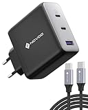 - Der NOVOO 120W USB C Ladegerät nutzt die fortschrittliche GaN-Technologie,um die Ladeeffizienz maximal zu steigern.Der NOVOO USB C Ladegerät USB C Netzteil kann gleichzeitig Ihr Laptop,Tablet und Smartphone aufladen.Hinweis 1:Für das Laden des Laptops verwenden Sie bitte den oberen USB-C1-Anschluss.Hinweis 2:Beim Anschließen mehrerer Geräte verteilt dieses USB C Ladegerät Schnellladegerät intelligent die Leistung und wählt automatisch das richtige Protokoll aus.
