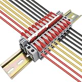 - ▶ Klemmenblöcke: Spezifikation: Nennspannung: 250 V; Nennstrom: 40A; Harter Draht: 0,5–6,0 mm²/20–10 AWG; flexibler Draht: 0,5–4,0 mm²/20–12 AWG; Abisolierlänge: 12 mm. Eigenschaften: schnelle Verdrahtung, isolierte Schale, Kupferleiter, beschädigt den Kern nicht, stabile Leitfähigkeit, lange Lebensdauer, Anti-Aging, Spannungsfestigkeit und Anti-Schock.