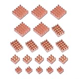 - [Komplettes Kühlkörper-Set] Dieses Set enthält 20 Stück reine Kupfer-Kühlkörper in verschiedenen Größen (15 x 15 x 5 mm, 15 x 10 x 5 mm, 8 x 8 x 5 mm, 6 x 6 x 5 mm), bietet umfassende Kühllösungen für Ihren Pi 4B.