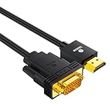 - 【Undirektionales HDMI auf VGA Kabel】 Der eingebaute fortschrittlichste IC-Chip wandelt das HDMI Signal in ein VGA Signal um. Bitte beachten Sie: Es unterstützt nur die Übertragung der Videosignale vom HDMI Ende zum VGA Ende und KANN KEINE Signale von VGA zu HDMI übertragen.