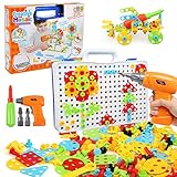 - 【Kreatives Mosaik Steckspiel】Dieses Werkbank Kinder verbindet Spiel und Bildung. Es ermutigt angehende Ingenieure, sich mit Konstruktionsprinzipien zu befassen und befähigt sie, Originalmodelle mit einer elektrischen Bohrmaschine, Schrauben und Muttern zu entwerfen und zu bauen.