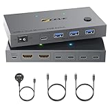 - 【KVM Switch 2 PC 2 monitore】Dieser USB-C-KVM-Switch ermöglicht 2 USB-C-Laptops die gemeinsame Nutzung von zwei Monitoren und 4 USB-3.0-Geräten. Unterstützt zwei Monitore (HDMI+DP oder HDMI+HDMI), um die gleichen oder unterschiedliche Bilder anzuzeigen. HINWEIS: Dieses Produkt unterstützt nur Laptops mit USB-C-Anschlüssen für den Eingang, Desktop-Computer können nicht verwendet werden. Wenn Laptops ohne USB-C-Anschlüsse können mit einem USB-C-zu-HDMI-Kabel nicht richtig angezeigt werden.