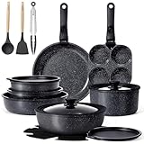 - Gesunde Keramikbeschichtung – Hergestellt mit 100 % ungiftiger Keramik-Antihaftbeschichtung, frei von PFOA, PFAS, PTFE, Blei und Cadmium. Genießen Sie gesünderes Kochen mit Keramiktöpfen und Pfannen Set