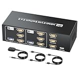 - 【Mit 4 USB 3.0-USB-Anschlüssen】 Dieser USB 3.0 KVM Switch 3 Monitore mit 4 Eingängen und 2 Ausgängen ist mit 4 USB 3.0-Anschlüssen für Maus, Tastatur, USB-Drucker und Scanner ausgestattet. Die USB 3.0-Übertragung ist stabiler und schneller. Wenn Sie nach einem KVM-Switch der USB 3.0-Version suchen, ist dies eine gute Wahl!