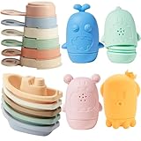 - 15-teiliges Baby-Badespielzeug Set: Enthält 4 weiche Silikon-Badespielzeuge in Tierform, 5 Badeboote und 6 stapelbare Becher/Löffel. Kinder können mit den Booten und Bechern Wasser schöpfen, sieben und gießen für lustige Badezeiten. Die Silikon-Badespielzeuge sind weich, leicht ausdrückbar, einfach auseinanderzunehmen und wieder zusammenzusetzen. Sie sind innen glatt und trocknen daher vollständig, um Schimmelbildung zu verhindern. Ein tolles Set für die Badewanne oder Wasserspiele, geeignet für Babys ab 6 Monaten und Kinder von 1-4 Jahren