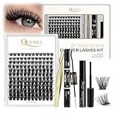 - 【DIY Wimpern Extension Kit】QUEWEL DIY Wimpern Extensions Kits, 144 Wimpern Cluster, 2 verschiedene Stile. Black lash bond&seal, eine goldene Pinzette für Wimpernhaufen und ein Cluster Wimpernkleber Entferner, speziell für DIY Wimpernverlängerung entwickelt. bequem zu Hause oder auf Reisen zu verwenden, ohne zu viel Speicherplatz in Anspruch zu nehmen.