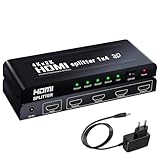 - 【HDMI Splitter 1 Auf 4】Teilen Sie das 1 HDMI-Eingangssignal in 4 identische HDMI-Ausgangssignale und übertragen Sie gleichzeitig Video und Audio ohne Qualitätsverlust. Die Eingangs- und Ausgangsöffnungen von HDMI bestehen aus Antioxidations- und Korrosionsschutzmaterialien, die eine stabile Signalübertragung und eine längere Lebensdauer gewährleisten