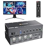 - 【Ultra HD 8K@60Hz/4K@144Hz】USB 3.0 HDMI KVM-Switch 2 Monitore 4 PC unterstützt Auflösungen von 8𝐊@𝟔𝟎𝐇𝐳, 4𝐊@𝟏𝟐𝟎𝐇𝐳/@𝟏𝟒𝟒𝐇𝐳. Der Switch für 2 Monitore und 4 Computer unterstützt auch den Anschluss von 2 Computern mit unterschiedlichen Auflösungen, z. B. Hinweis: Bitte verwenden Sie ein HDMI 2.0-Kabel (Kabellänge nicht länger als 1,5 m), wenn Ihr Gerät eine 8K-Auflösung ausgibt, und stellen Sie sicher, dass Ihre Computer und Monitore alle auch 8K unterstützen.