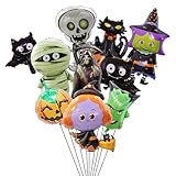 - Halloween Folienballons: 10 verschiedene Muster Halloween Luftballons. Enthält Kürbis schwarze Katze ca. 85 * 50 cm, Mini Fledermaus ca. 23 * 20 cm, Magische Hexe ca. 98 * 47 cm, 18 Zoll grüner Blattkürbiskopf ca. 60 * 45 cm, Fliegende Hexe ca. 95 * 60 cm, Fledermaus ca. 50 * 80 cm, Monsterkopf ca. 49 * 67 cm, Mumie ca. 48 * 75 cm, Tanzendes Skelett ca. 86 * 65 cm, Komm her ca. 41 * 73 cm.