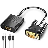 - 【Plug & Play】VGA ausgang HDMI eingang adapter benötigt keinen Treiber, ist einfach zu bedienen, schnell, bequem und kompakt. Vergoldeter Stecker, dieser adapter vga auf hdmi aus mehrsträngigem Kupferdraht kann die externen elektromagnetischen Störungen für eine optimale Datenübertragung abschirmen. Der USB-Anschluss MUSS angeschlossen sein, um den aktiven VGA-HDMI-Chipsatz mit Strom zu versorgen.