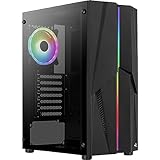 - Ausgestattet mit einem 12 cm großen ARGB-Lüfter auf der Rückseite des Gehäuses, Seitenteil aus gehärtetem Glas, um das Innere Ihres Rigs zu präsentieren