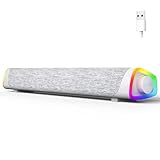 - [Dynamischer beleuchtungseffekt]: Diese Computer-Soundbar verfügt über einen LED-Streifen, und Sie können die Beleuchtungsfarbe mit den Lichttasten an der Seite des Lautsprechers wechseln. 2 Modi einstellbar: Farbverlauf, Monochrom. Verleiht Ihnen ein starkes Gefühl von Atmosphäre.