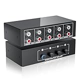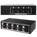 - 【Audio Switcher 4 in 1 out】 - Mit dem 4X1 Stereo Audio Wahlschalter können Sie vier Audioquellen, z. B. einen Host, einen DVD-Player, einen CD-Player, einen Videorecorder und eine TV-Box, an einen einzigen Ausgang (einen Satz Lautsprecher) anschließen oder Kopfhörer), was eine nahtlose Konnektivität mehrerer Geräte ermöglicht.