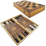 - HOLZ BACKGAMMON-SET: Schönes Backgammon-Set mit Schachspielfeld auf der Aussenseite in einer tollen Holzkassette. Genießen Sie eines der beliebtesten Strategiespiele der Welt in einem rustikalen Design. Das Backgammon-Spielbrett im Inneren der Holzkassette bietet dabei einen stilvollen Kontrast zum äußeren Schachspielbrett
