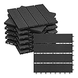 - 🌳【Robustes Material】Die Terrassenfliesen bestehen aus einem Verbundwerkstoff namens Wood Plastic Composite, bestehend aus 60% Holzfaser und 40% PE-Kunststoff. Sie sind UV-beständiger als Holz, da sie Feuchtigkeit abweisen und hohe Temperaturen ausgleichen können.
