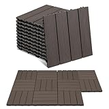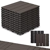 - 👣【WPC Terrassenfliesen】Maße: ca.30x30x2,2cm (Die Terrassenfliesen sind 30x30cm groß, für einen m² sind ca. 11 Fliesen notwendig).Farbe: Coffee , Material: WPC (50% Holz, 50% Kunststoffgemisch)100% recyclable and environmentally friendly. Bequemes Barfußlaufen, kein Spalten wie Holz.
