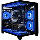 - [Lüfter] 9 ARGB-PWM-Lüfter für kraftvollen Luftstrom und dynamische Geschwindigkeitsregelung, PC-Gehäuse, Panorama mit Front- und Seiten-Voll-Panel-Hartglas für Panoramablick, keine Bloatware, Grafikausgabe-Optionen umfassen 1 x HDMI und 1 x DisplayPort-Garantie, zusätzliche Anschlüsse können variieren, kostenlose USB-Tastatur mit Regenbogen-Hintergrundbeleuchtung und LED-USB-Maus