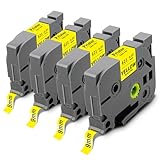 - 4 Pack Pristar Kompatibel mit Brother Tze621 TZe-621 TZ 621 tze 9mm Schriftband. Farbe: schwarz auf Gelb/ Größe: 9mm (0.35") x 8m (26.2')