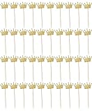 - Hergestellt aus hochwertigem Papier und lebensmittelechten natürlichen Bambus-Zahnstochern, freundlich zum Körper. Glänzend und schön. Glitzer Gold Krone Cupcake Topper, Glitzer fällt nicht ab.