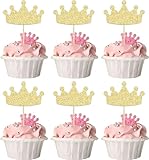 - 【Goldglitter】:Diese kronen cupcake ist aus Gold Glitter dickes Papier, das hart, glitzernde, robust und schön ist gemacht. Crown Cupcake Dekorationen sind ideal für Prinzessin Themen-Geburtstagspartys