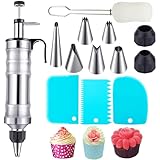 - Professionelles Tortendekorationsset:13-teiliges Tortenspritzenset mit 1 Spritze, 6 Düsen, 3 Buttercremeschabern, 2 Kupplungen und 1 Reinigungsbürste.Mit unserem Tortenzubehör können Sie schöne Torten und köstliche Kekse kreieren und das Leben genießen.Es kann auch zum Einspritzen von Soße und zum Dekorieren verschiedener Lebensmittel verwendet werden, was es zu einem praktischen Backwerkzeug macht.