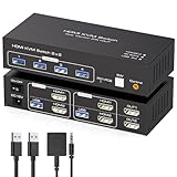 - 【DP HDMI KVM Switch Dual Monitor Support 4K120Hz 8K60Hz】Unser HDMI 2.1 DP 1.4 KVM unterstützt 4k120hz und ist abwärtskompatibel mit 4k60hz, 4k30hz, (2056*1440) *120hz, 1080p240hz, 1080p144hz, usw., aber nur wenn Ihr Monitor auch diese Auflösung unterstützt