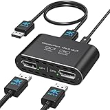- 4K Ultra HD Qualität:Display port splitter 1 in 2 out unterstützt bis zu 4K120Hz (3840×2160). Einzelausgang bis 4K60Hz, abwärtskompatibel mit 2K120Hz/60Hz, 1080P120Hz/60Hz. Dual-Ausgang bis 4K60Hz/30Hz (vorausgesetzt, Ein-/Ausgabegeräte unterstützen dieselbe Auflösung) für atemberaubende Farben und Kontrast. Hinweis: Verwenden Sie DP 1.4-Kabel ≤1,8m