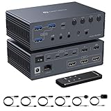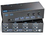 - 【HDMI KVM Switch 4 pc 3 Monitore】Dieses KVM docking station unterstützt 4 Computer-Eingänge und 3 Monitor-Ausgänge. Das Gerät ist mit Windows- und MacOS-Betriebssystemen kompatibel, ermöglicht den Drei-Bildschirm-Modus zur mühelosen Erweiterung des Desktop-Bereichs und steigert so die Arbeitseffizienz. (Das Gerät benötigt USB-3.0- oder höhere Anschlüsse als Eingangsquelle)