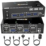 - 【Ultra HD 8K@60Hz/4K@144Hz】USB 3.0 HDMI KVM-Switch 2 Monitore 4 PC unterstützt Auflösungen von 8𝐊@𝟔𝟎𝐇𝐳, 4𝐊@𝟏𝟐𝟎𝐇𝐳/@𝟏𝟒𝟒𝐇𝐳. Der Switch für 2 Monitore und 4 Computer unterstützt auch den Anschluss von 2 Computern mit unterschiedlichen Auflösungen, z. B. Hinweis: Bitte verwenden Sie ein HDMI 2.0-Kabel (Kabellänge nicht länger als 1,5 m), wenn Ihr Gerät eine 8K-Auflösung ausgibt, und stellen Sie sicher, dass Ihre Computer und Monitore alle auch 8K unterstützen.
