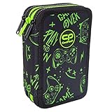 - Dieses Federmäppchen hat ein tolle, moderne Design, perfekt für Gaming-Enthusiasten. Seine Grafik ist vollständig von der Welt des Gamings inspiriert, mit einer Mischung aus Symbolen, Controllern und Kopfhörern, die im urbanen Sketch-Stil entworfen wurden. Die Hauptfarbe ist schwarz, mit weißen, grauen und neongrünen Akzenten, die einen auffälligen und Tech-Look verleihen. Auf der Vorderseite befindet sich ein großes Design eines Konsolen-Controllers, begleitet von der Aufschrift "Game On".