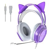 - Schönes Design: Dies ist das erste Farbverlauf-Headset mit abnehmbaren Katzenohren und RGB-Hintergrundbeleuchtung auf dem Markt. Die Ohrpolster haben Kitty-Logos. Das Headset lässt Ihre Mädchen Frauen viel liebenswert aussehen. Die RGB-Hintergrundbeleuchtung kann mit dem Schalter an der Leitungssteuerung ausgeschaltet werden