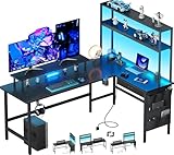 - 【Monitorhalterung mit LED-Licht】 Der gaming tisch verfügt über eine ergonomische Monitorständer, die optimale Sicht für Gaming und Büroarbeit bietet und Nacken- sowie Augenbelastung verringert. Darunter befindet sich ein LED Streifen mit verschiedenen Modi und Farben. Mit einer Smartphone App lassen sich die Lichteffekte einfach umschalten, um die Atmosphäre je nach Szene anzupassen und ein immersives Spielerlebnis zu schaffen.