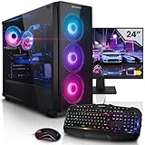 - Hinzu kommt ein 24 Zoll Full HD LED Monitor, eine RGB Gaming-Tastatur und eine RGB Gaming-Maus mit einstellbaren DPI.