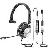 - Wantek USB Headset mit Mikrofon, USB/3,5mm PC Kopfhörer mit Lautstärkeregler Stummschalttaste, Computer On-Ear Headset mit Mikrofon, Kopfhörer mit Langem Mikrofonkabel für Laptop, PC