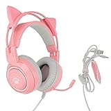 - [Katzenohren Neues Design] Das Gaming-Headset verfügt über abnehmbare Katzenohren, praktisch für Jungen und Mädchen; Weiche Kunstleder-Ohrmuscheln und einziehbarer, gepolsterter Kopfbügel sorgen für optimalen Tragekomfort für jeden Spieler und reduzieren Hörschäden und Schweiß.