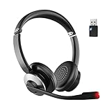 - 【Bluetooth 5.0 & USB Dongle】Dieses Bluetooth-Headset mit Mikrofon ist mit Bluetooth und USB-Dongle ausgestattet, unterstützt die Verbindung von Computern, Handys und anderen Bluetooth-Geräten. Auch wenn Ihr Computer nicht über Bluetooth verfügt, schließen Sie ihn einfach mit dem mitgelieferten USB-Dongle an. Das Wireless Headset mit Mikrofon hat eine erweiterte Reichweite von 15 Metern und befreit Sie von Ihrem Schreibtisch. Die 40-mm-Audiotreiber liefern klaren HD-Sound und erstklassigen Klang – perfekt für Musik und verständliche Kommunikation.