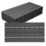 - 👣【Starke Haltbarkeit】WPC-Fliesen bestehen aus hochwertigen Holz-Kunststoff-Verbundwerkstoffen, so dass die Fliesen wasserabweisend und äußerst haltbar sind.Das Material ist witterungs- und UV-beständig und bleibt auch ohne Behandlung mit Lacken oder Ölen form-und farbstabil. Bequemes Barfußlaufen, kein Spalten wie Holz.