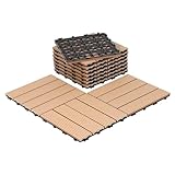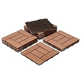 - 【WPC Terrassenfliesen】Maße: ca.30x30x2,2cm (Die Terrassenfliesen sind 30x30cm groß, für einen m² sind ca. 11 Fliesen notwendig).Farbe: Braun, Material: WPC (50% Holz, 50% Kunststoffgemisch)100% recyclable and environmentally friendly. Bequemes Barfußlaufen, kein Spalten wie Holz.