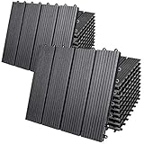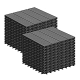- 🌳【Robustes Material】Die Terrassenfliesen bestehen aus einem Verbundwerkstoff namens Wood Plastic Composite, bestehend aus 60% Holzfaser und 40% PE-Kunststoff. Sie sind UV-beständiger als Holz, da sie Feuchtigkeit abweisen und hohe Temperaturen ausgleichen können.