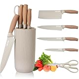 - Ergonomisches und sicheres Design: Der Griff der Messer und Scheren ist leicht und hat weiche Formen und abgerundete Linien für einen bequemen Halt. Hergestellt aus Polypropylen (PP), ist er hochbeständig gegen Reinigungsmittel und extreme Temperaturen. Spülmaschinenfest und chemikalienbeständig.