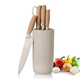 - Scharfes Messer: Die gehärteten Klingen der Schneidemesser haben eine langanhaltende Schärfe. Die Farblackierung verhindert, dass Lebensmittel an der Klinge haften bleiben
