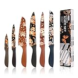 - 🎁【EXQUISITE CARTOON-MUSTER】- Dieses farbenfrohe Küchenmesserset verfügt über schöne Cartoon-Tierdrucke auf jeder Klinge, von niedlichen Dinosauriern bis hin zu eleganten Füchsen, so dass Sie beim Schneiden in der Küche immer von einer entspannten Atmosphäre umgeben sind.