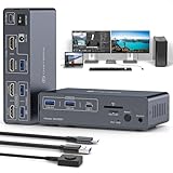 - 【USB C+HDMI KVM Switch 2 PC 2 Monitore】 Der USB-C HDMI Dual Monitor KVM Switch kombiniert die Funktionalität einer USB-C Dockingstation und 2 PC 2 monitore KVM Switch, der nicht nur die Erweiterung Ihres USB-C Laptop um zwei HDMI Monitorausgänge und 4 USB 3.0 Ports ermöglicht, sondern auch die einfache Freigabe von 2 Monitore und 4-USB 3.0 Geräten zwischen Arbeitsdesktop und persönlichem Laptop ermöglicht.