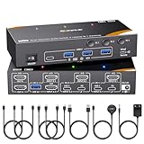 - 【KVM Switch 4 PC 3 Monitore】: Dieser HDMI + 2DisplayPort Triple Monitore KVM Switches unterstützt 4 Desktop- oder Laptop-Computer, die sich 3 Monitore und 4 USB 3.0-Anschlüsse teilen. Hinweis: Mit diesem KVM-Switch können Sie nur dann 4 Computer und 3 Monitore gleichzeitig verwenden, wenn Ihr Computer 3 Monitore oder mehrere Monitore unterstützt.