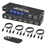 - 【KVM Switch 4 PC 1 Monitor】Dieser HDMI KVM Switch ermöglicht es, dass 4 Computer einen Bildschirm und 4 USB3.0-Geräte wie Maus, Tastatur, Drucker usw. gemeinsam nutzen können. Durch die Verwendung der Fernbedienung oder der Schaltknöpfe auf dem Panel können Sie einfach zwischen den 4 Computern wechseln, ohne komplizierte Vorgänge. Sie können das Produkt außerhalb des Arbeitsbereichs platzieren, um den Schreibtisch aufgeräumt zu halten.