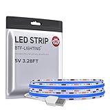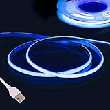 - 5V USB COB LED Streifen: 1M, 320 LEDs/m, CRI>85, Blau. hell als gewöhnliche LED-Lichtstreifen mit gleichmäßiges, weichem Leuchten, Hohe Dichte verteilte LED-Chips. Lineare Beleuchtung, keine Sorgen mehr über dunkle Flecken, die ideal ist, um die Überanstrengung der Augen zu reduzieren. Es wird über USB mit Strom versorgt und kann direkt in eine USB-Buchse oder einen Ladeblock gesteckt werden