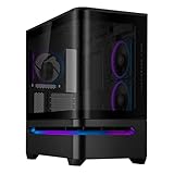 - Die gebogene Hartglasscheibe erstreckt sich nahtlos von der Vorderseite bis zur Seite und bietet einen Panoramablick auf die Komponenten aus fast jedem Winkel