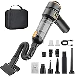 - 【3-in-1-Multifunktions-Ministaubsauger】Der Handstaubsauger verfügt über eine Vielzahl von Zubehörteilen und hat die Funktionen Blasen, Saugen und Saugen. Er kann nicht nur als Staubsauger zum Reinigen des Innenraums von Haus und Auto verwendet werden, sondern auch als Druckluftspray und Vakuumkompressor. Damit können Sie schwer zu reinigende Bereiche wie Computertastaturen und Hostcomputer problemlos reinigen und auch Küchenstaub, Schmutz und Tierhaare wegfegen. Darüber hinaus kann dieser tragbare Autostaubsauger auch Ihren Saugbedarf für die Aufbewahrung von Kleidung zu Hause und das Versiegeln von Lebensmitteln sowie zum Aufblasen von Schwimmringen auf Reisen erfüllen.